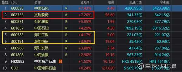 1、在市中,目前的原油票主要有14支,包括: 601857石油、600028石化、002207准油份、601808中海油服、600688S上石化、000554泰山石油、000637茂化实华、000819岳阳兴长、000096广聚能源、002221东华能源、600157鲁润份、002377国创高新、002493荣盛石化石油概念票、300164通源石油等等