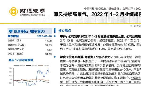 江苏中天科技份有限公司系重点高新技术企业,作为“特种光缆”于2002年10月24日在上海证券交易所上市。证券代码:600522。 企业前身为1976年成立的如东县河口砖瓦厂,曾用名南通市黄海建材厂、南通中南特种电缆厂、江苏中天光缆