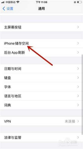首先我们是可以点击 < 设置 > - < 通用 > - < iPhone储存空间 > 的选项。