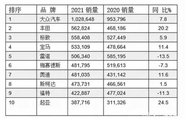欧洲汽车排名?