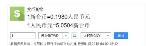 货币汇率nt$,是新台币的符号。新台币与的换算,需要通过美元为中介进行两次换算,也就是新台币和美元汇率换算成等值美元,再以美元对汇率换算出等值。2021年12月,430新台币约换算为100;100新台币大约等于22。