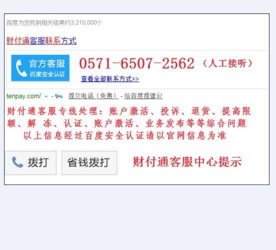 1 财付通电话查询方式2 要查询财付通电话,可以通过以下方式进行:首先开财付通官方网站或者下载财付通机应用,然后登录自己的财付通账号,进入个人中心或者联系页面,查找相关,包括电话号码等。3 在财付通官方网站或者机应用中,提供了多种,包括电话等,通过这些方式可以查询到财付通电话号码。此外,还可以通过搜索引擎或者财付通官方社交媒账号等渠道获取财付通电话号码。4 查询财付通电话的目的是为了解决一些账户问题、支付问题或者其他相关问题,通过直接与财付通进行电话沟通,可以更快速地解决问题,获得的帮助和指导。5 在查询财付通电话之前,建议先尝试通过财付通官方网站或者机应用中的帮助中心、常见问题等资源进行自助解决,以节省时间和精力。如果问题无法通过自助方式解决,再考虑联系财付通电话进行咨询。