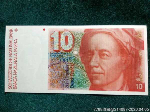 瑞士法郎是瑞士联邦和列支敦士登的法定货币。瑞士法郎的印刷有其独到之处,即用瓦楞线组成的人像是用深凹版印刷,形成一个细微的波纹水线网,纬线厚度和高度变化使肖像显出明亮区和阴暗区,垂直观察可见印刷的线条和分隔它们的空间,肖像显示显示正常形象,倾斜观察,高的线条遮住了白的空档,阴暗区变得密集,肖像变为深色,四根白色防伪线条清楚的显现出来。的中部使用了兰色荧光油墨;地印图案巧妙的隐藏在花饰图案中。
