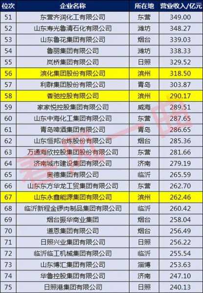 滨化集团,魏桥纺织,盟威集团,鲁北化工,亚光集团,京博集团,华纺份,愉悦家纺,西王集团,齐星集团,滨州网通,滨州联通,滨州电信,东方地毯,裕华集团,海得曲轴,交运集团,青龙山水泥,皇冠厨业,华兴机械,在天塑料,京华汽贸,侨昌化,隆达食品等。