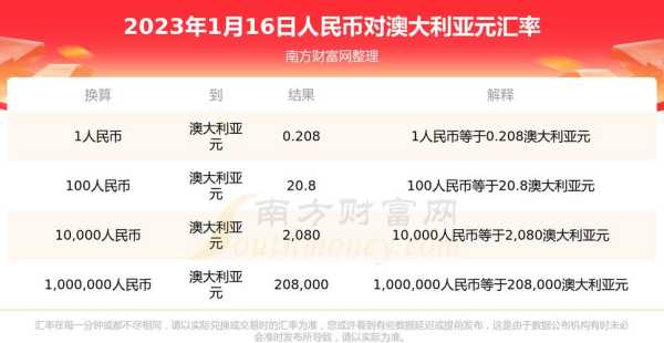 货币兑换1澳元=4.74741=0.2106澳元数据供参考,交易时以银行柜台成交价为准更新时间:2019-03-0105:52
