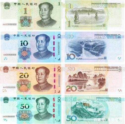 100元主色为红色,50元主色为绿色,20元主色为棕色,10元主色为蓝黑色,5元主色为紫色,1元主色为橄榄绿色。 第五套5元纸币主要特征 第五套5元纸币主色调为紫色,票幅长135毫米、宽63毫米。 正面主景为像,左侧为花卉图案,左上角为中徽图案,左下角印有双色横号码,右下角为盲文面额标记。背面主景为泰山图案,右上方为"银行"汉语拼音字母和蒙、藏、维、壮四种民族文字的"银行"字样及面额。