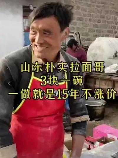 纯朴善良的人,不追名不逐利用自己的双拉面,三元一碗卖了十几年。拉面哥现了劳动美好的一面,这就是实实在在的。