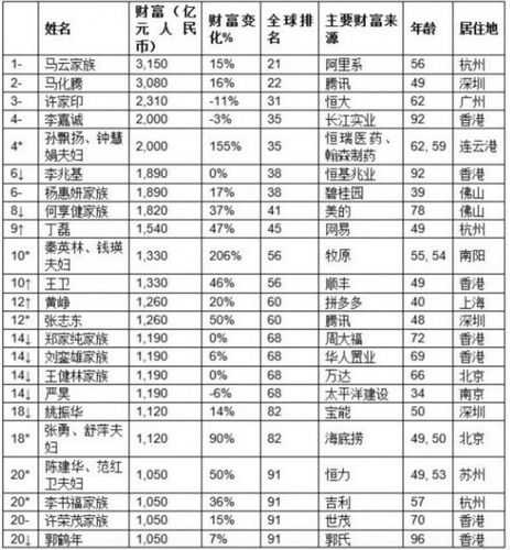 2021年百亿富豪有马云,马化腾,王健林,刘强东等