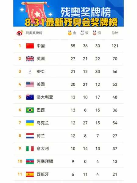 2019残奥会总排名榜?