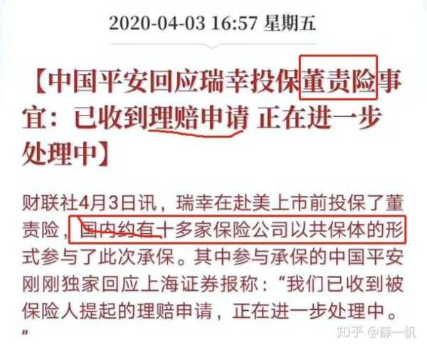 基础层又按比例分几家公司承保。承保的公司还可能会自留和找再保险。瑞星咖啡的承保就是分级联保。瑞幸咖啡购买的0万美元保额“董责险”,由多家保险公司共保,一共有4层,总保额高达0万美元。底层1000万共保由八家中资公司组成,包括安(30%)、太保(17.5%)、人保财险(15%)、中华联合(15%)、国任财险(10%)、大地财险(5%)、锦泰财险(5%)、前海财险(2.5%)。所以,2020-4-10号,安发声“安产险承保了基础层保单主承保份额的30%,并分保100万美元、自留可能损失200万美元”。