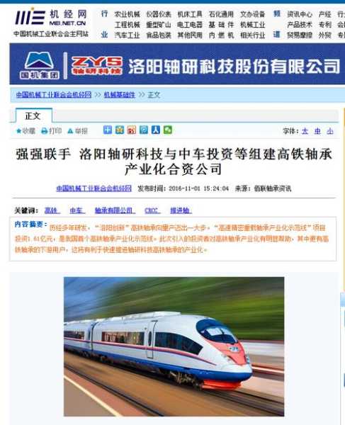 洛阳轴研科技份有限公司的前身是洛阳轴承研究所,成立于1958年,是我国轴承行业的一类综合性研究所,洛阳轴研科技份有限公司是由洛阳轴承研究所于2001年12月改制组建的份制企业,是集人才、技术、科技成果为一,重点为国民经济建设各领域关键主机及国防建设研制“高、精、尖、专、特”轴承产品的高新技术企业。2005年5月,在深圳证券交易所上市,票代码002046。