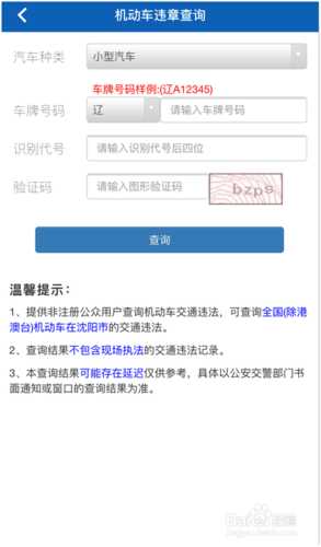 第四步 查询交通违法并处理:通过首页“违法处理”进入违法查询界面,输入查询条件(本人车辆违法可以通过下拉按钮选择)。