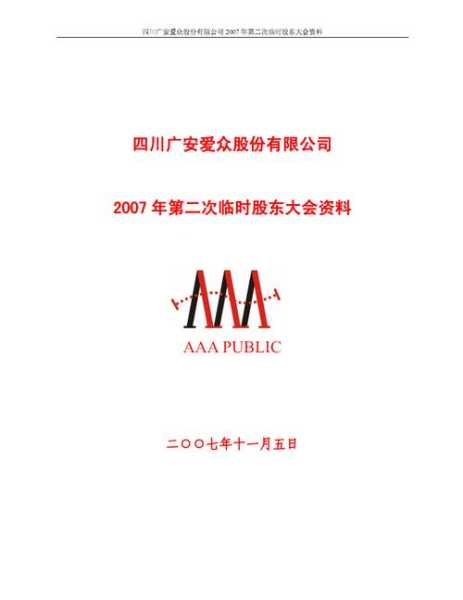 四川广安爱众份有限公司是于2002年10四川省批准由原四川渠江电力有限公司改制设立的一家份制有限公司,公司A于2004年9月在上海证交所成功上市,票代码为600979。