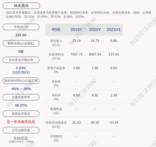 锦龙份东质押票是利好还是利空?