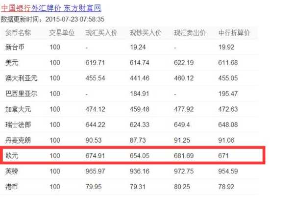 货币兑换 1欧元=7.3123元 1元=0.1368欧元 交易时以银行柜台成交价为准 更新时间:2017-01-09 23:13