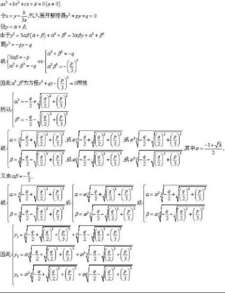 一元三次方程ax^3+bx^2+cx+d=0的求根公式是1545年由意大利者卡当发表在《关于代数的》一书中,人们就把它叫做“卡当公式(有的数资料叫卡尔丹公式)最早是南宋数家秦九韶至晚在1247 年就已经发现一元三次方程的求根公式,欧洲人在400 多年后才发现,但在的课本上这个公式仍是以那个欧洲人的名字来命名的。