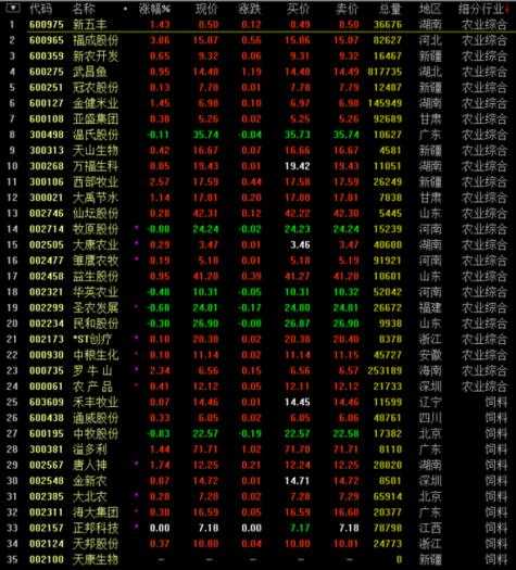 种植业、林业上市公司一览表 600540 新赛份 000713 丰乐种业 600506 香梨份 002041 登海种业 000998 隆高科 600975 新五丰 600127 金健米业 600265 景谷林业 000702 正虹科技 002200 绿 大 地 600359 新农开发 600108 亚盛集团 000972 新 中 基 000860 顺鑫农业 600189 吉林森工 600257 洞庭水殖 600965 福成五丰 000918 S ST亚华 000722 *ST 金果 600313 ST中农 000557 ST银广夏 000061 农 产 品 600195 中牧份 000798 中水渔业 002173 山 下 湖 600467 好当家 000663 永安林业 002086 东方海洋 600844 丹化科技 600251 冠农份 000735 *ST 罗牛 000048 *ST 康达 900921 丹科B 600695 ST大江 600598 北大荒 600438 通威份 600354 敦煌种业 600311 荣华实业 600180 九发份 600093 禾嘉份 002100 天康生物 000876 新 希 望 900919 ST大江B 200992 中 鲁B 002069 獐 子 岛 600275 *ST昌鱼 000780 ST 能 000588 PT粤金曼 600762 *ST金荔 600709 ST 600181 *ST云大