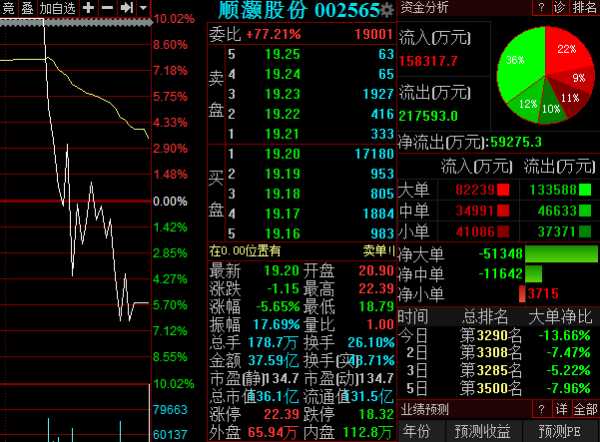 不推荐作为价值投资长期持有。上海顺灏新材料科技份有限公司,成立于2004年,由顺灏投资集团投资控。公司于2009年8月完成份制改制,2011年3月18日在深圳证券交易所上市(简称顺灏份,票代码002565)。