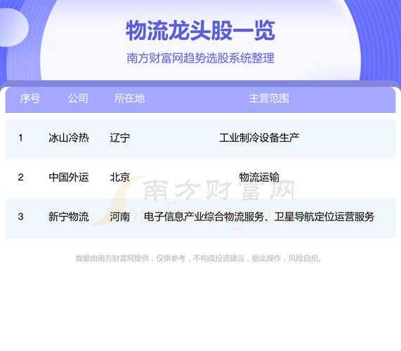 >物流上市公司主要包括:铁路物流、仓储物流、港口物流、公路物流和海运物流