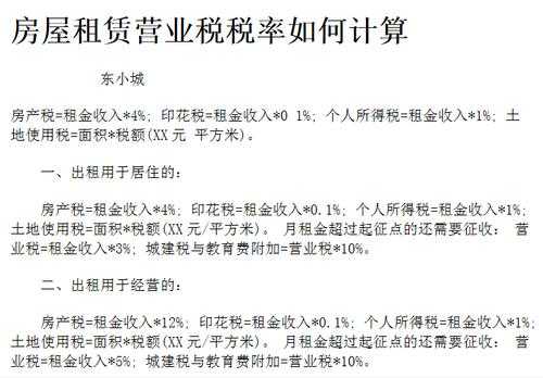 4、个人所得税:按财产租赁所得,每次收入不超过4000元的,减除费用800元,4000元以上的,减除20%的费用,其余额为应纳税所得额,税率是20%。