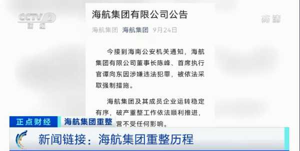 >6、海航集团:因不能清偿到期债务,债权人申请破产重整。