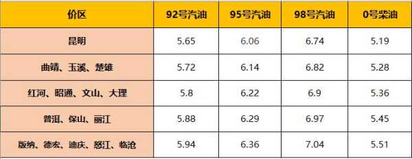 参考: 地区 90号汽油 93号汽油 97号汽油 0号柴油 - 92号:8.06 95号:8.58 8.04 上海(国IV) - 8.00 8.51 7.92 天津 7.16 7.72 8.14 7.58 重庆 7.37 7.80 8.16 7.65 福建 7.16 7.59 8.0