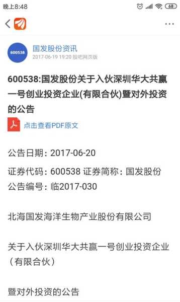 国发份全称为北海国发川山生物份有限公司主要从事于医药行业和文化酒店产业,生产销售滴眼剂、片剂、糖浆剂、胶囊、颗粒药品,以及部分器械的生产销售,同时对海洋生物如藻类、贝类等一系列的产品进行研发与销售,同时涉足房地产行业的投资,销售购买建筑材料、家具、灯饰、五金、装饰材料等。