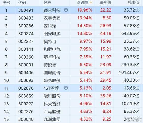 创业板有50个如下: