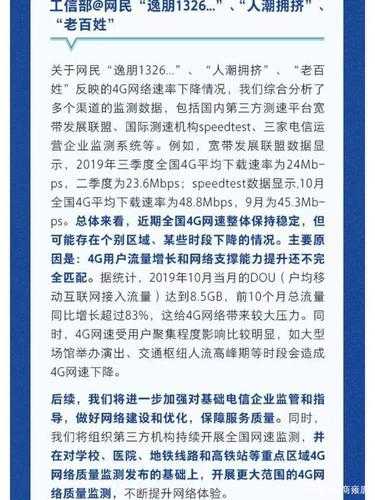 从用户数角度看,随着2G/3G用户加速向4G迁移,截至2019年7月,我国4G用户数达12.4亿,占移动电话用户的78.3%,尤其在演唱会、火车站等用户密集区,可能存在用户数过多造成暂时的验速率下降的情况 。