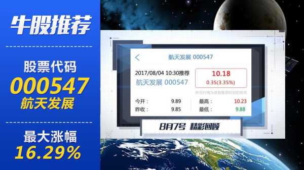 航天发展票代码000547,的电子蓝军主要设备供应商。主营业务电磁科技工程,信息,海洋信息装备,通信指挥。随着军事工业大发展,公司迎来巨大成长机遇,是绩优成长