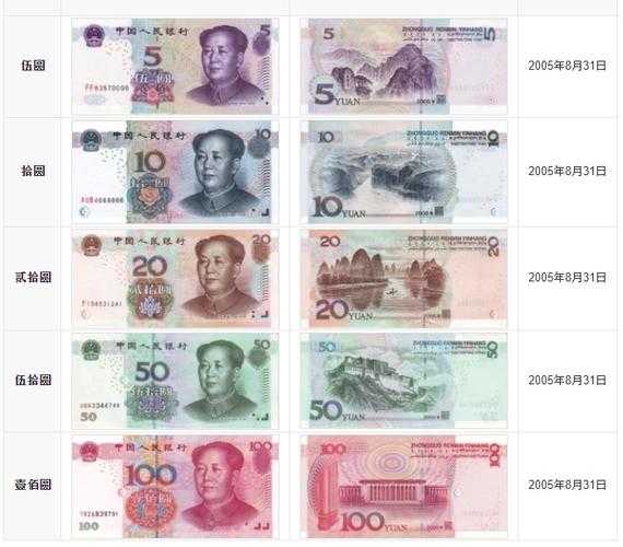 1999年版有1角、5角、1元、5元、10元、20元、50元、100元八种面额,在1999年10月1号陆续发行。
