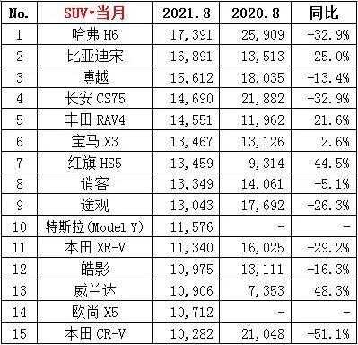 21年汽车排行榜?