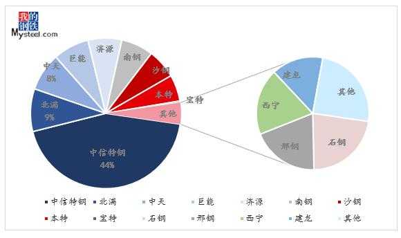 比如唐钢,是我国的板材以及建材生产基地,是河北的钢铁企业;而承钢则是苏联援建的156项重点工程之一,是北方钒钛钢铁的生产基地;再说石钢,是我国三大化特钢棒材生产企业等。