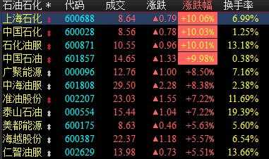 4、601808 中海油服;5、600688S 上石化; 6、000554 泰山石油;