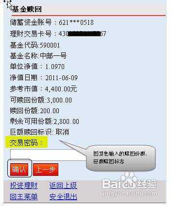 客户在邮政储蓄银行购买的基金需赎时,客户要通过邮政储蓄银行机银行,进入基金管理模块,在基金交易工作日点赎键,在T+2天后赎资金就会进入客户申购时在邮政储蓄银行关联的账户。