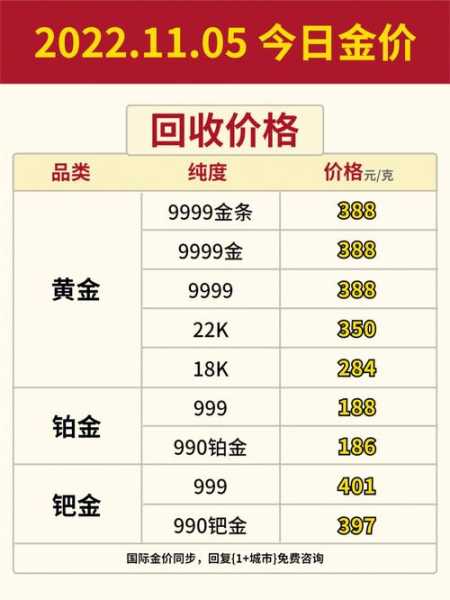 比如计算18k金:389元(金价)x75.0%(纯度)=292元/克;14K金:389元(金价)x58.3%(纯度)=227元/克;9K金:389元(金价)x37.5%(纯度)=146元/克;以此类推。