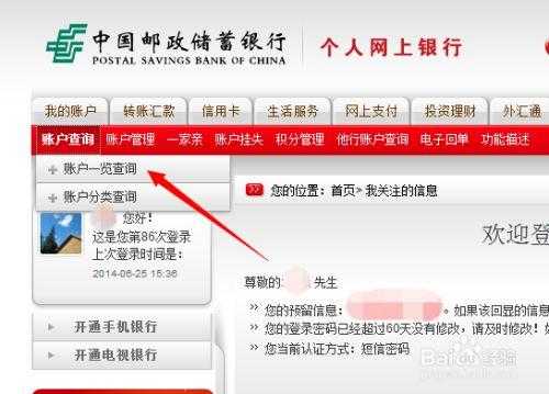 2、登录邮政银行账户。