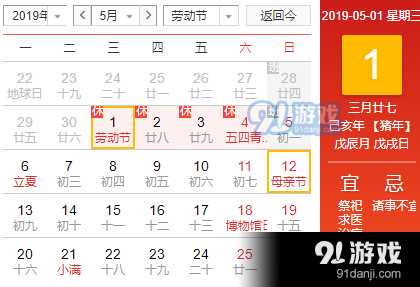 2019年劳动节时间:2019年5月1日