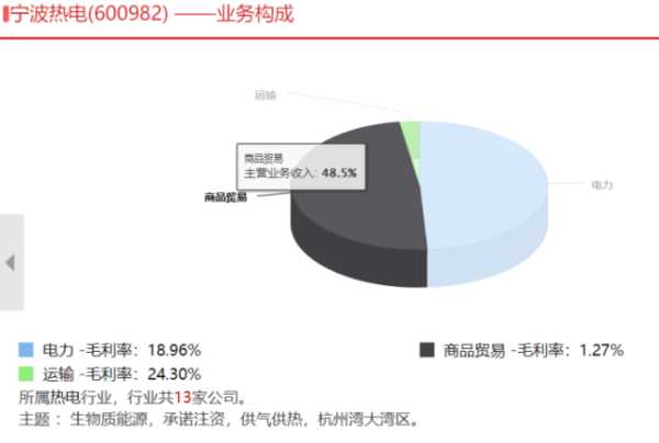 3、宁波能源(600982):公司主要从事热电联产、生物质发电、抽水蓄能和综合能源服务,以及能源类相关金融投资等业务。