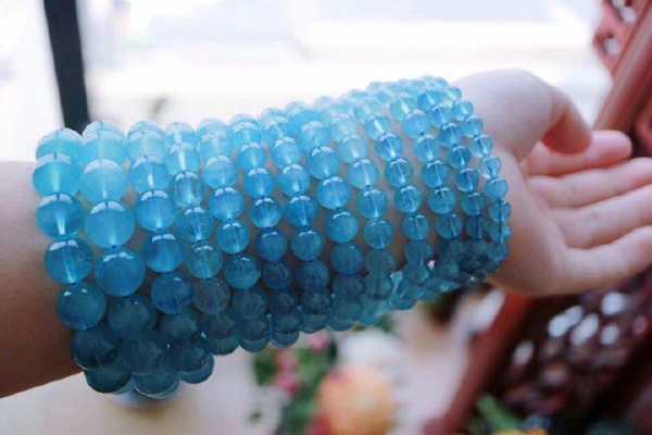 海蓝宝石是一种含铍、铝的硅酸盐,颜色为天蓝色至海蓝色或带绿的蓝色,它的颜色形成主要是因为含微量的二价铁离子(Fe2+),以明洁无瑕、浓艳的艳蓝至淡蓝色为。