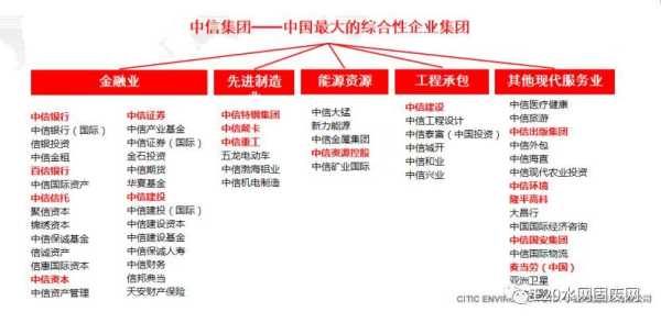中信集团有子公司有:一・金融类子公司:中信控有限责任公司中信信托有限责任公司中信投资控有限责任公司中信银行份有限公司(上市公司)中信银行()有限公司中信金融控有限公司信诚人寿保险有限公司(合资保险公司)中信证券份有限公司(上市公司)中信新际期货有限公司(合资期货经纪公司)中信资产管理有限公司中信资本控有限责任公司信诚基金有限公司二・实业类子公司中信国安集团公司中信泰富有限公司(上市公司)中信澳大利亚公司中信()集团有限公司中信华东(集团)有限公司中信华南(集团)有限公司中信深圳(集团)公司国华工程承包公司中信地产份有限公司中信建设有限责任公司市政工程中南设计研究院武汉建筑设计院中信金属公司中信重工机械份有限公司(上市公司)中信天津工业发展公司中信机电制造公司渤海铝业有限公司中信戴卡份有限公司中信有限公司中信科技份有限公司中信资源控有限公司(上市公司)三・服务类子公司中信合作公司中信物业服务有限公司中信出版社中信旅游总公司经济咨询公司亚洲卫星控有限公司(上市公司)中信海洋直升机份有限公司(上市公司)中信文化传媒集团中信商贸有限公司鸿联九五信息产业有限公司扩展资料:中信集团有限公司(前称信托投资公司,简称中信集团,英文为CITIC Group),是经总设计师亲自倡导和批准,由前副荣毅仁于1979年10月4日创办的公司。主要业务集中在金融、实业和其它服务业领域。截止2011年底,中信集团旗下拥有境内A上市公司中信国安、中信银行、中信证券、中信海直、中信重工,600084ST中葡等六家公司,上市公司则包括中信泰富、中信资源、中信21世纪、中信1616集团,以及中信银行H、中信证券H。中信泰富晚间在港交所公告称,正式宣布公司正在与中信集团等有关方面就收购中信份权之潜在收购进行协商。2018年,《财富》世界500强排行榜中信集团有限公司排名49位。参考资料:百度百科―中信集团有限公司