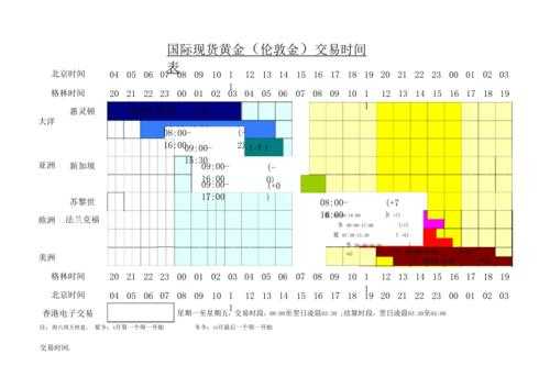 亚盘:交易日7:00—15:30欧盘:交易日14:00—01:30美盘:交易日20:00—翌日3:00注:每年4月到10月为夏令时,开盘交易时间时间按上表进行,而每年11月到次年3月为冬令时,欧盘和美盘开盘交易时间会推迟1小时。现货黄金(也叫现货黄金和伦敦金)是即期交易,指在交易成交后交割或数天内交割。现货黄金是一种性的投资产品,由各黄金公司建立交易台,以杠杆比例的形式向做市商进行网上买卖交易,形成的投资理财项目取决于现货黄金的规格,2013年止市面出现的投资金条,金币,金砖等,从几克至几公斤不等,规格越小,门槛越低,但是小规格产品附加的加工费会相对多些。扩展资料:投资者应选择入市时间:现货黄金开盘时间由各个盘组成,而它又有结算和休市的时间。