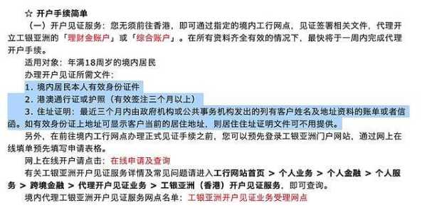 工银亚洲的开户条件首先是年满18周岁的境内居民,其次就是下述三种资料: