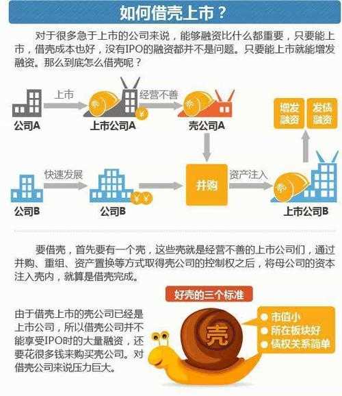 买壳上市是指一家未上市的公司通过收购已经上市的空壳公司来实现上市。空壳公司通常是指没有实际业务或资产的公司,一个上市的票交易代码和东结构。未上市的公司通过收购空壳公司,可以借助其已有的上市台,快速实现上市,并且可以避免了传统IPO(公开发行)的繁琐程序和时间成本。