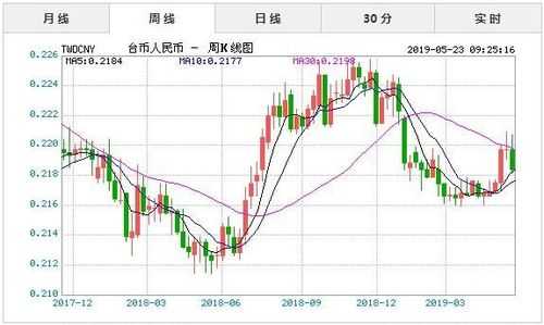 人民币对新台币的汇率为5389,而新台币的汇率为0.2203。即1元等于新台币5389元,1元新台币为0.2203元人民币。也就是说100新台币等于203元人民币。