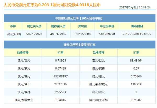 2、货币兑换1澳元=9986人民币,1人民币=0.2001澳元。数据仅供参考,交易时以银行柜台成交价为准更新时间:2018-09-22。