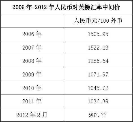 历年英镑对人民币汇率