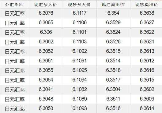 今天日元对人民币汇率是多少